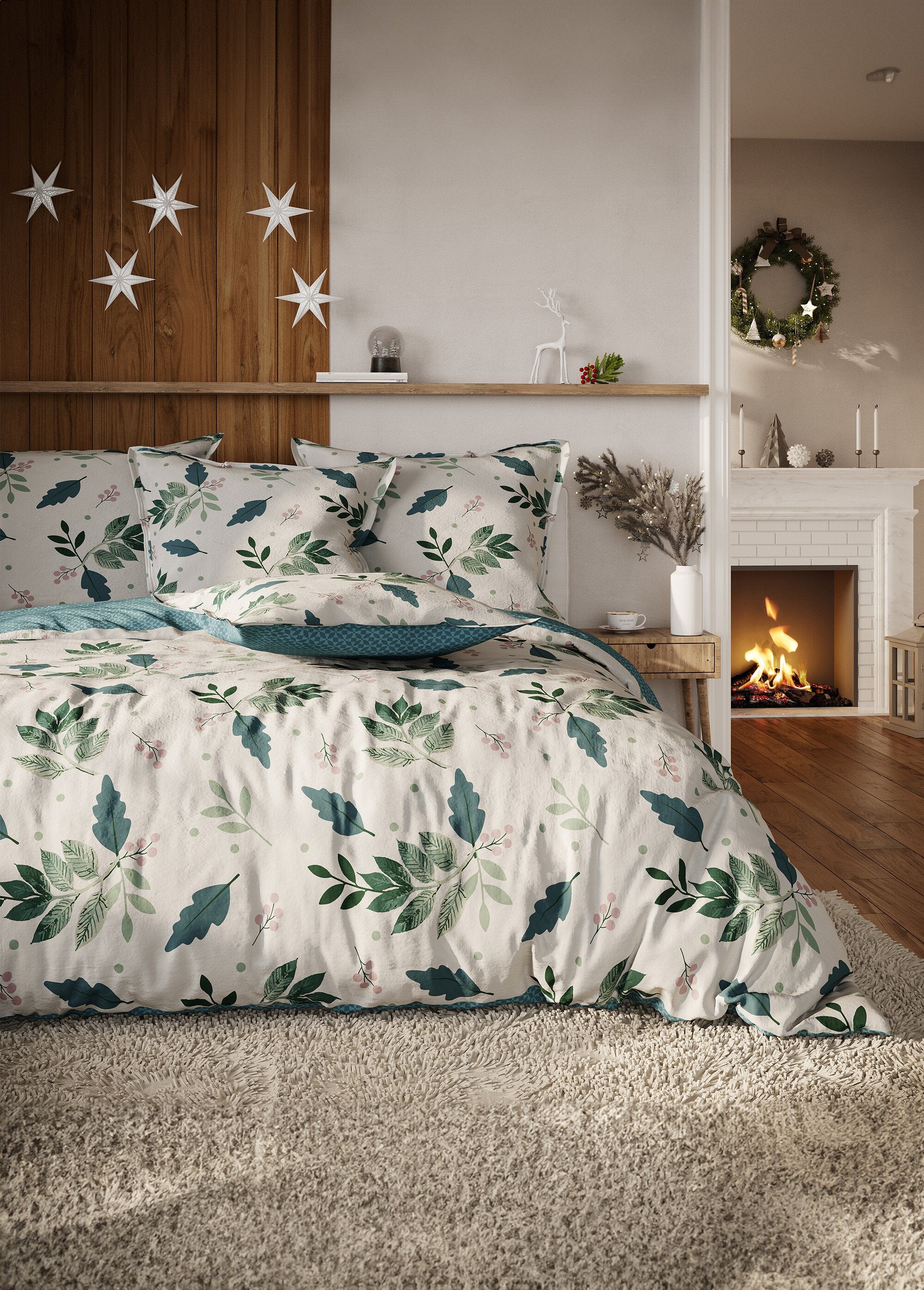 3-piece_bedding_set_with_duvet_cover,_foliage_Beige_print_FA1_slim 3-piece_bedding_set_with_duvet_cover,_foliage_Beige_print_DO1_slim
