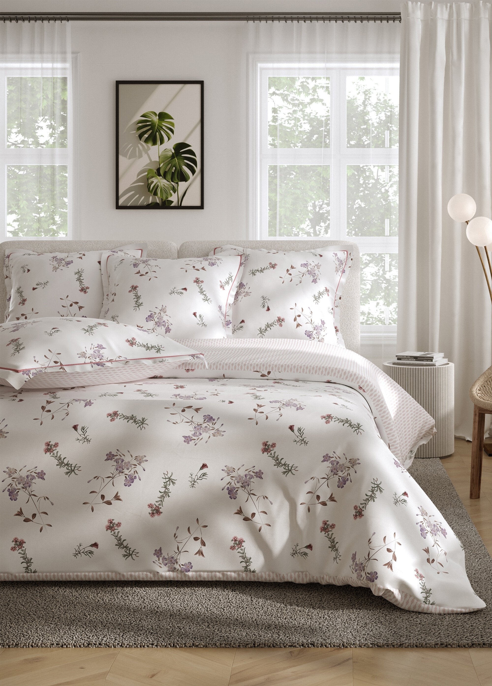 4-piece_percale_bed_set_with_flat_sheet,_violets_Print_white_FA1_slim 4-piece_percale_bed_set_with_flat_sheet,_violets_Print_white_DO1_slim